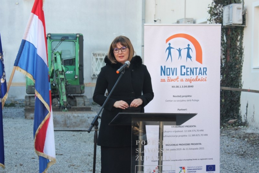 U sklopu provedbe projekta „Novi centar za život u zajednici“ koji je odobren u sklopu poziva „Unapređivanje infrastrukture za pružanje socijalnih usluga u zajednici kao podrška procesu deinstitucionalizacije – druga faza“, sufinancira se izgradnja nove zgrade Centra za socijalnu skrb Požega, uz partnere Požeško-slavonsku županiju i grad Pleternicu.